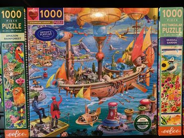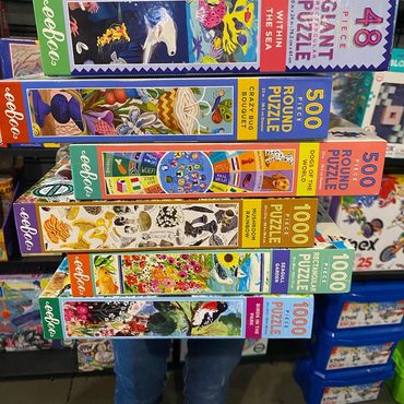 Here are a few examples of the types of puzzles we carry. There will always be more to see when you visit our store. If you can't get here in person, send us a message! Tell us what you're looking for and we'll let you know if it's available. You can also schedule a Facetime shopping trip with us! We are happy to ship items.